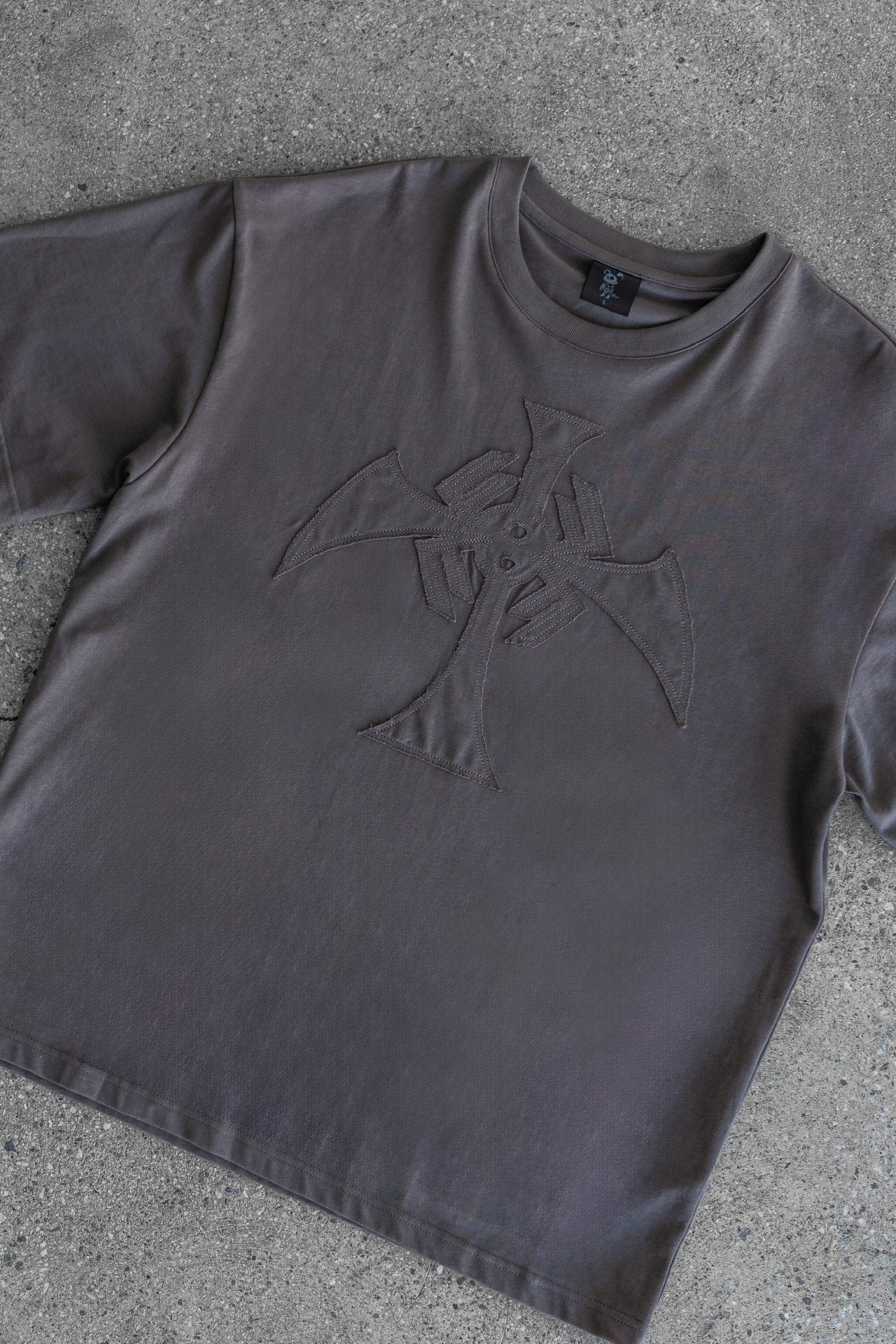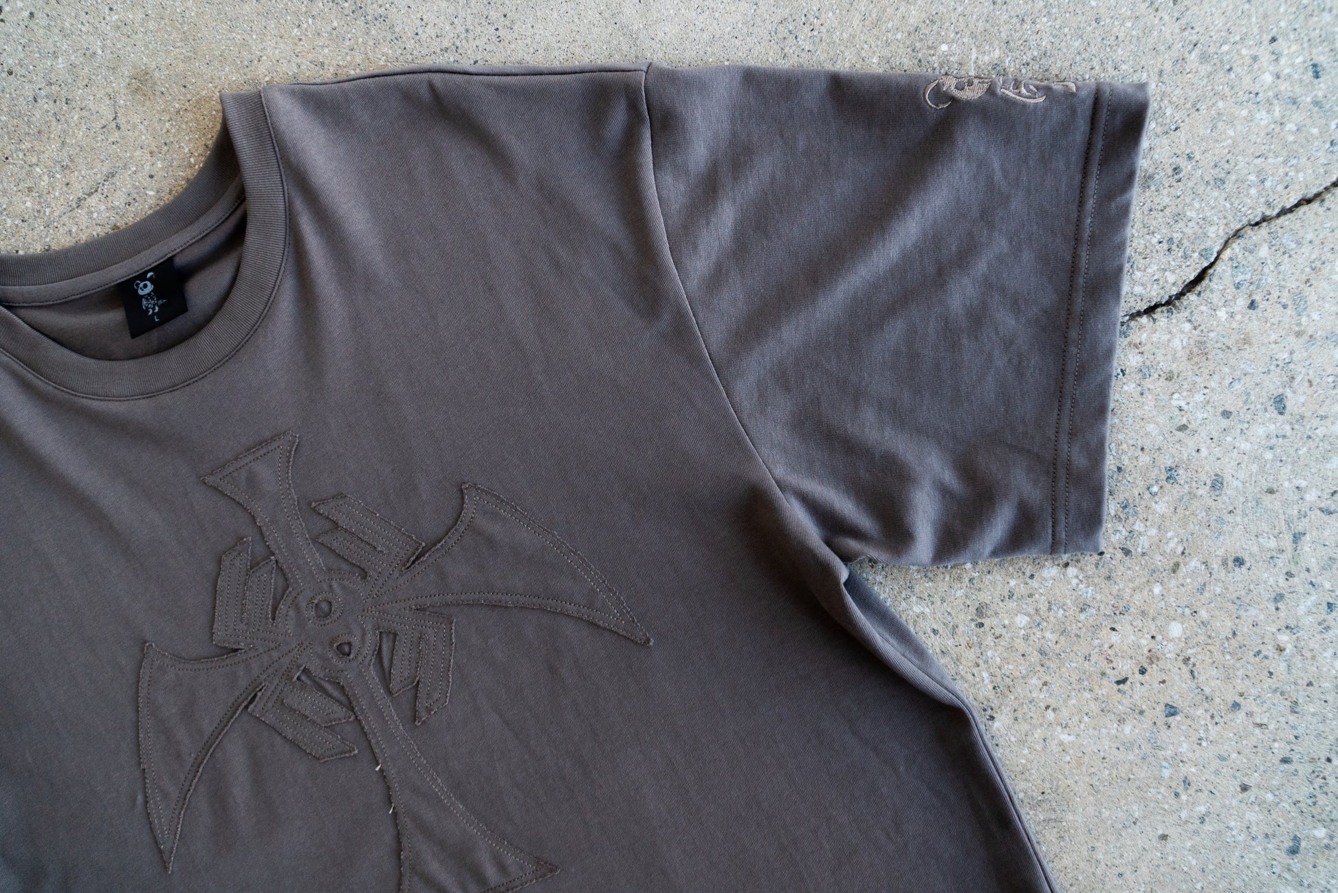 Cotton, 230gsm, t-shirt with fabric patch embroidery, and true-to-size-fit.