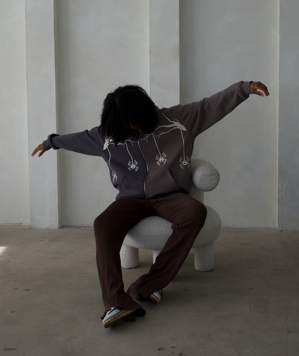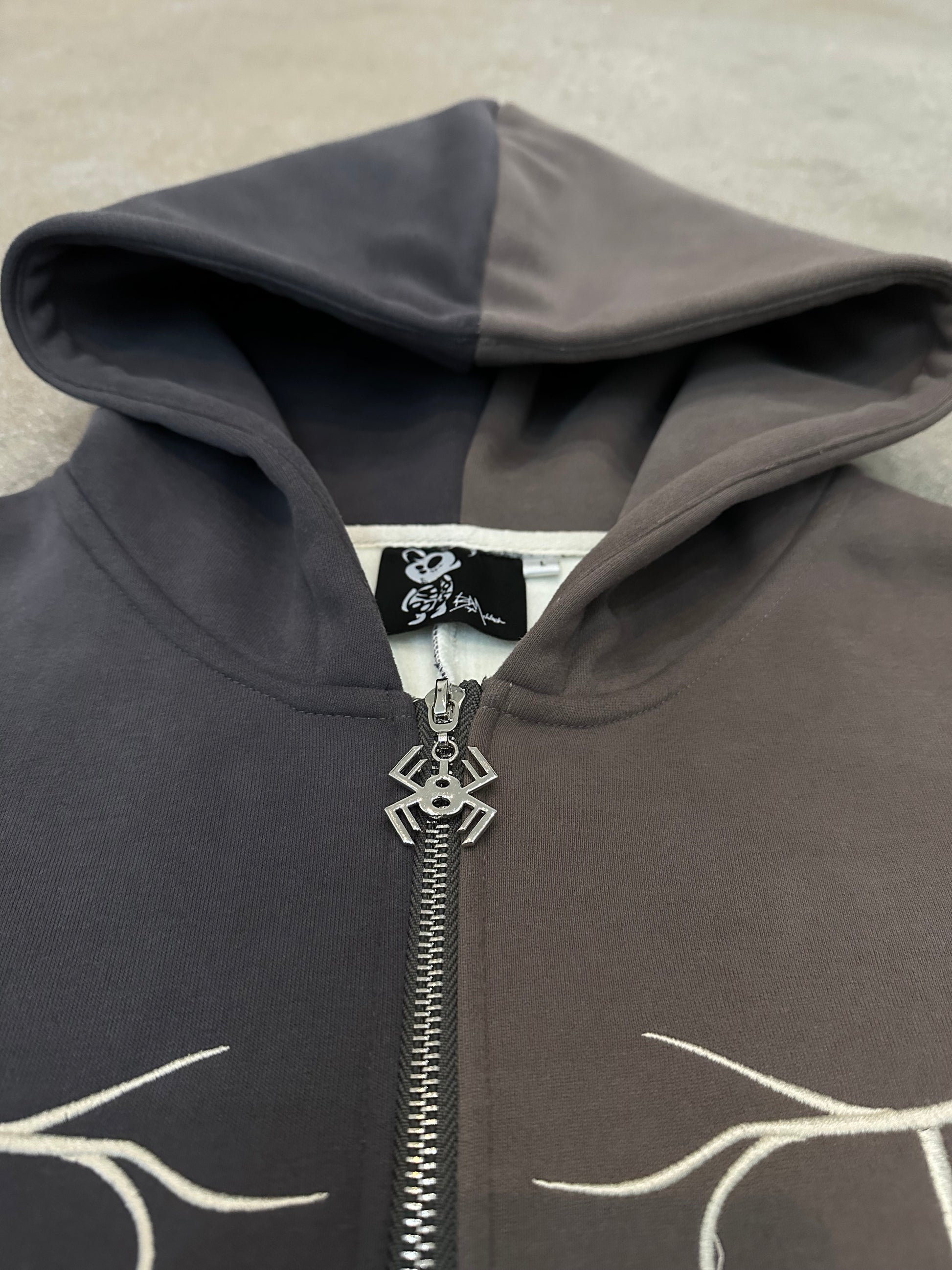 Cotton fleece, 400 gsm hoodie with embroidered details, and loose, baggy fit.